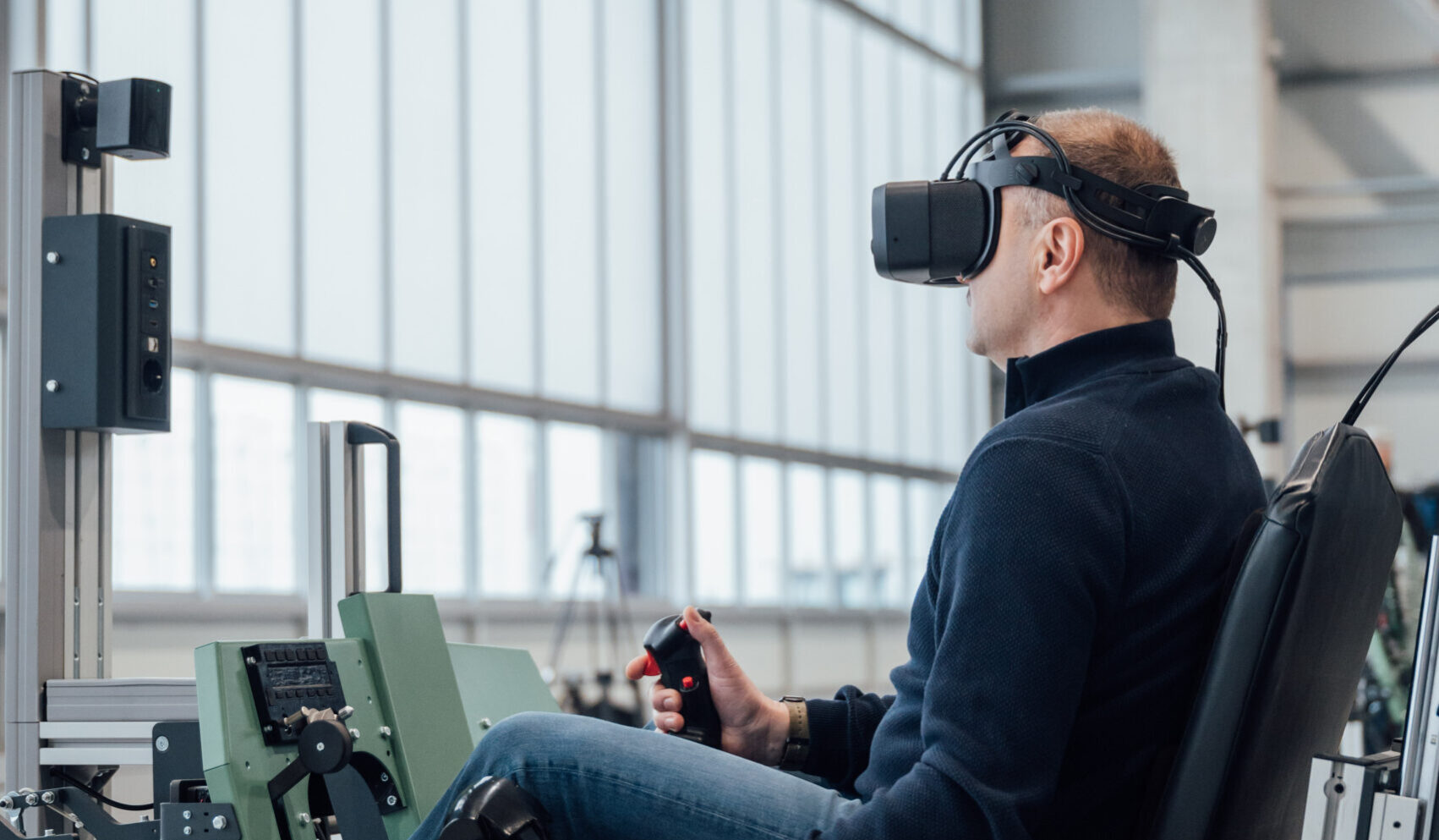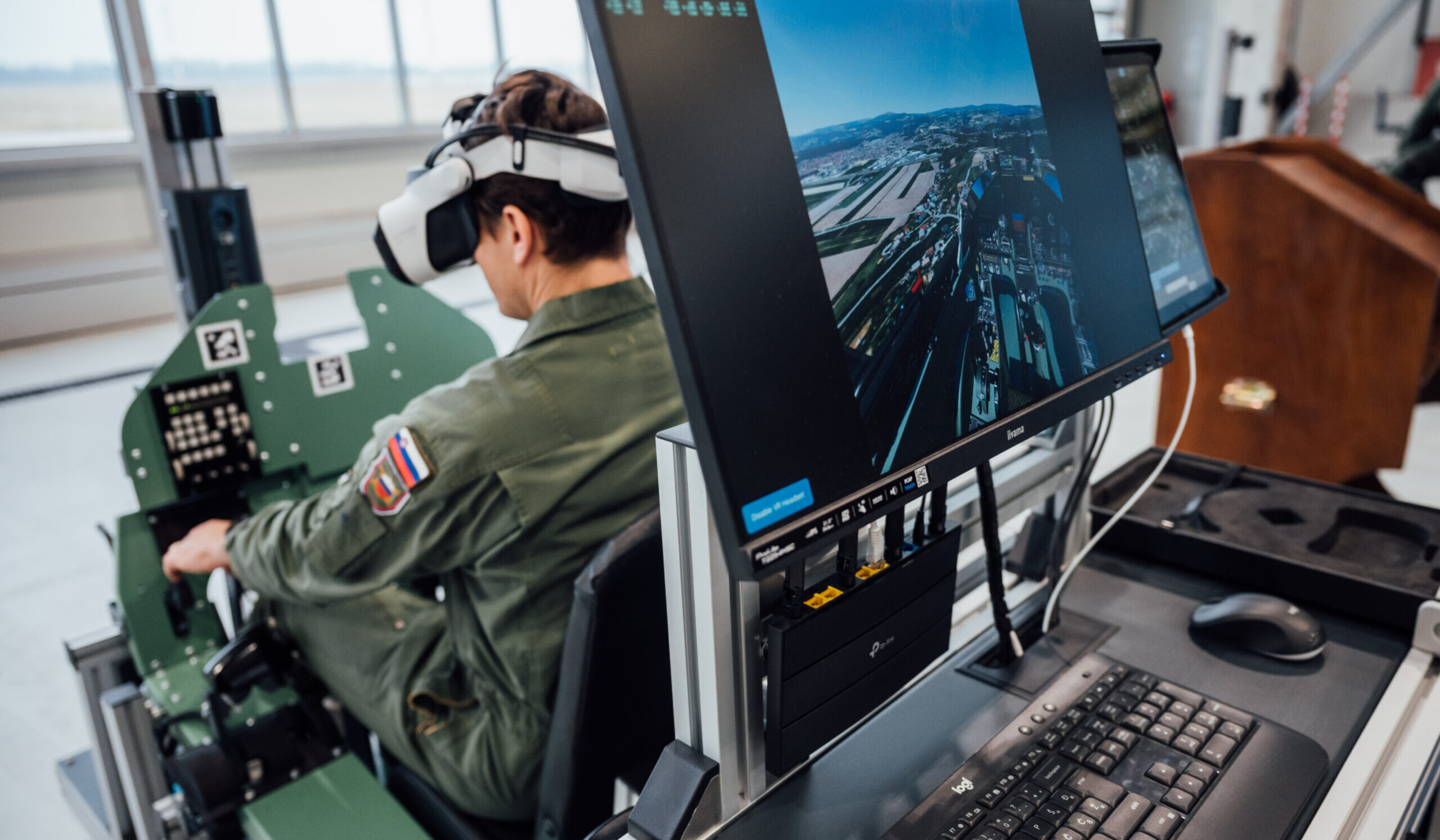 The VR setup’s key advantage lies in its complete immersion, which enhances focus and realism without requiring a physical cockpit. The system integrates seamlessly with other simulators, enabling multi-simulator coordination for formation flying, joint tactical missions, and operational planning.